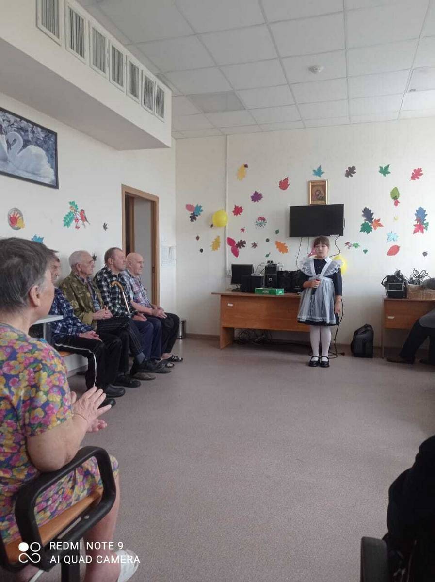 Работники культуры района и волонтеры МОУ "2-Засеймской СОШ"устроили праздничный концерт для жителей дома-интерната. Как всегда, в их праздничной концертной программе прозвучали красивые, душевные песни и слова поздравлений. Поздравили,пожелали всем крепкого здоровья, долголетия, побольше радости и сердечного тепла.