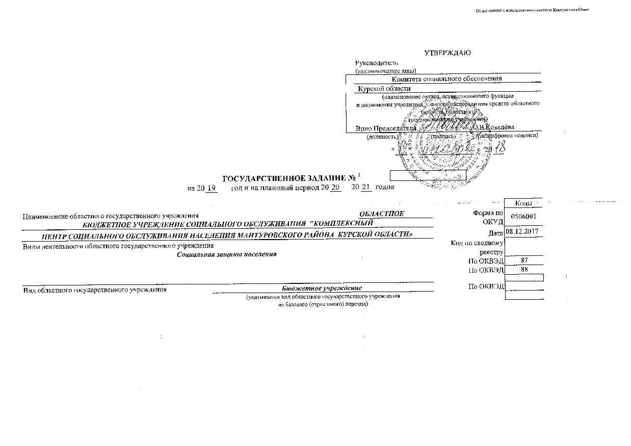 Государственное задание на 2019 год и на плановый период 2020 и 2021 годов (29.12.2018)