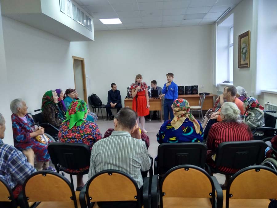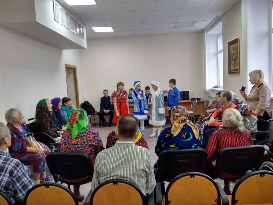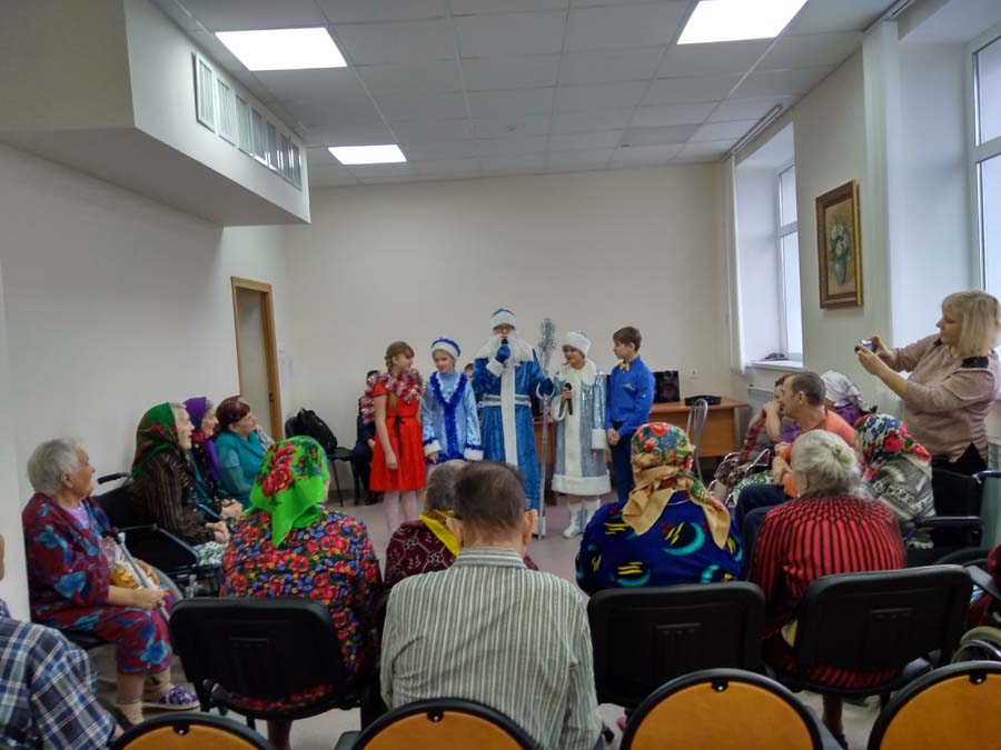 В отделении временного проживания граждан пожилого возраста и инвалидов стало уже доброй традицией в преддверии Нового года встречать гостей из  Сеймской средней школы. Ребята провели замечательный концерт. Песнями, плясками, сценками и просто добрыми словами  поздравляли проживающих.  Они зарядили праздничным настроением наших стариков,  для которых такие теплые встречи  - это продолжение жизни, наполненной радостными и светлыми днями.