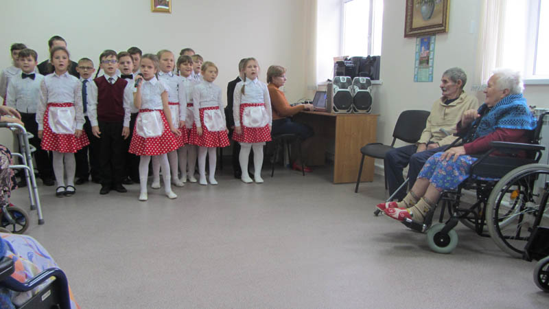 По всей стране в конце ноября проходят мероприятия, посвященные Дню матери. Стало уже традицией отмечать этот праздник в отделении временного проживания граждан пожилого возраста и инвалидов ОБУСО «КЦСОН Мантуровского района».   22 ноября 2018 года проживающие собрались в Актовом зале на праздничный концерт, который подготовили ученики МОУ «Кривецкая средняя общеобразовательная школа».  Жители отделения всегда рады гостям, особенно детям. Отрадно заметить, что юные волонтеры МОУ «Кривецкая СОШ» проявляют внимание к старшему поколению постоянно. Очень стараются юные артисты, ведь перед ними особый зритель.