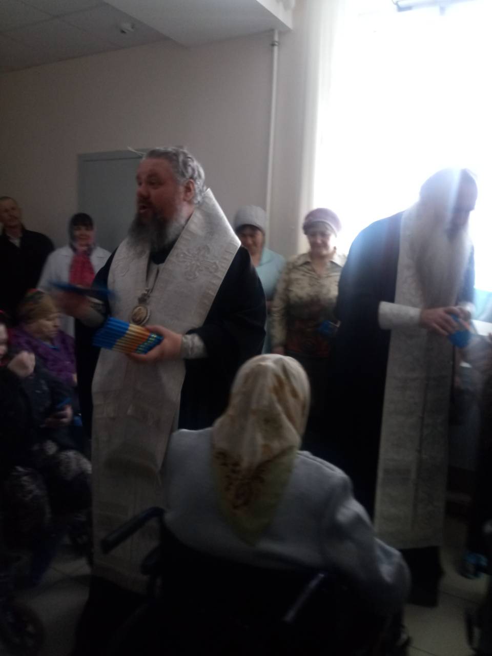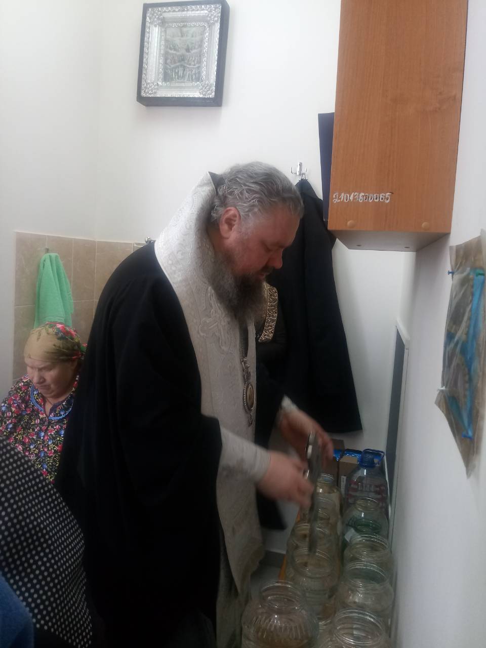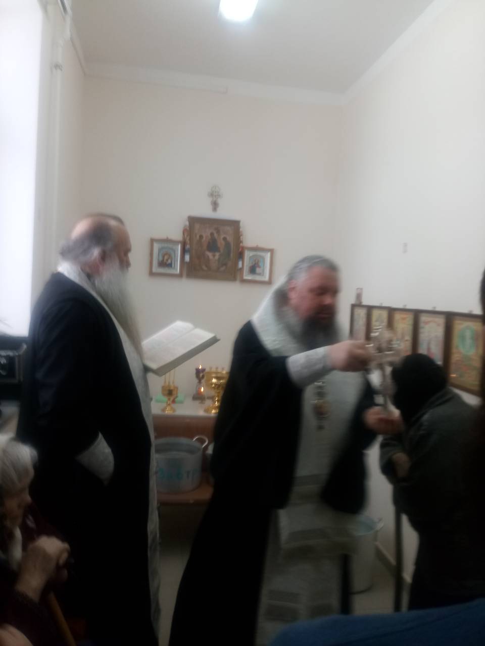 18 января в канун великого праздника Крещения Господнего, православная церковь отмечает Крещенский сочельник. Именно в этот день в молельной комнате отделения временного проживания граждан пожилого возраста и инвалидов Глава Щигровской епархии епископ Паисий и протоирей храма архангела Михаила – Василий Афанасьев, провели праздничный молебен и обряд водосвятия. Епископ Паисий окропил присутствующих освященной водой,  имеющей особенность передавать благодатные свойства. Затем батюшки, заходя в каждую комнату, окрестил каждого и вручил  всем проживающим сладкие подарки.