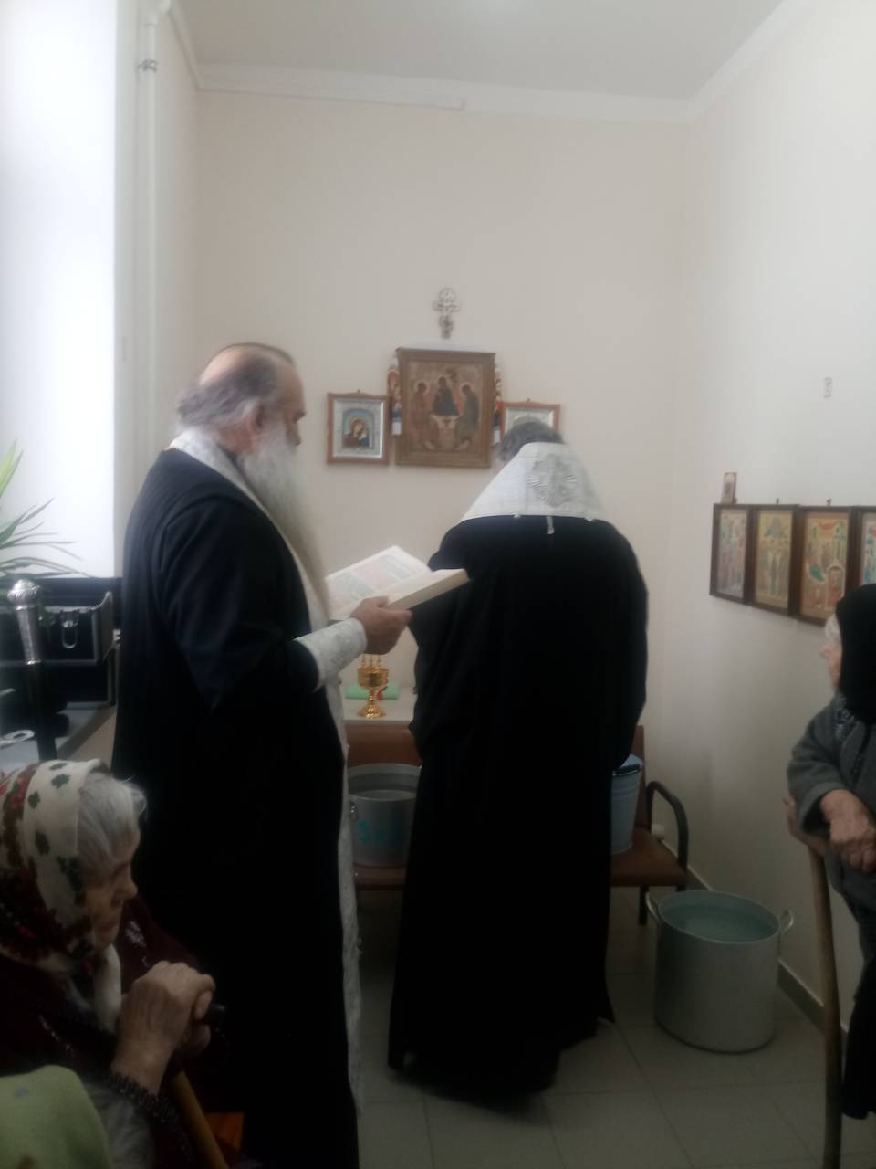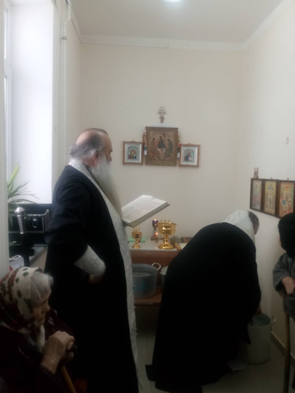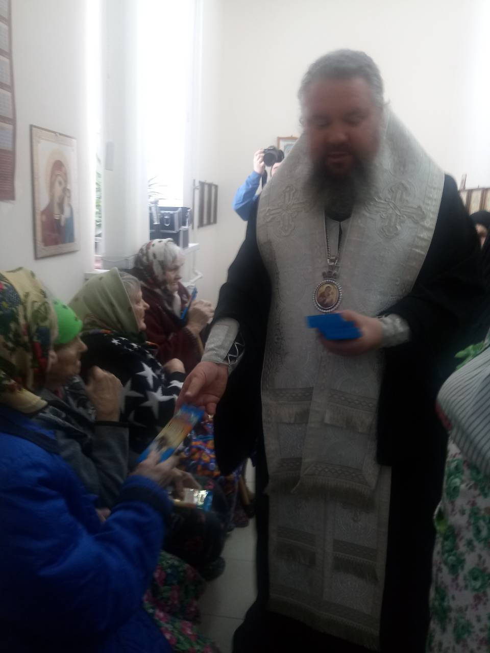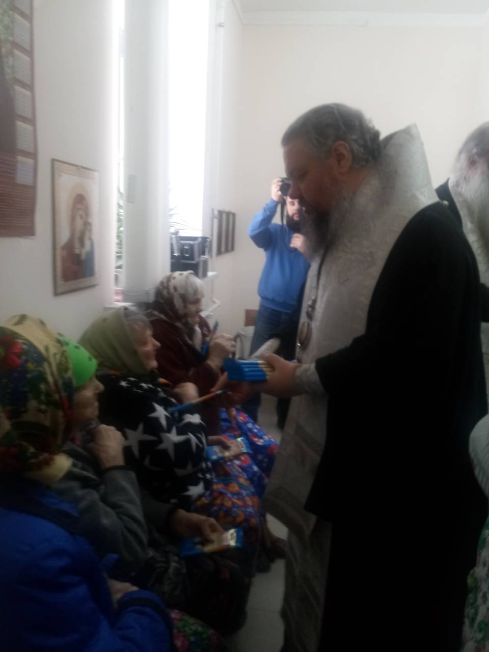 18 января в канун великого праздника Крещения Господнего, православная церковь отмечает Крещенский сочельник. Именно в этот день в молельной комнате отделения временного проживания граждан пожилого возраста и инвалидов Глава Щигровской епархии епископ Паисий и протоирей храма архангела Михаила – Василий Афанасьев, провели праздничный молебен и обряд водосвятия. Епископ Паисий окропил присутствующих освященной водой,  имеющей особенность передавать благодатные свойства. Затем батюшки, заходя в каждую комнату, окрестил каждого и вручил  всем проживающим сладкие подарки.