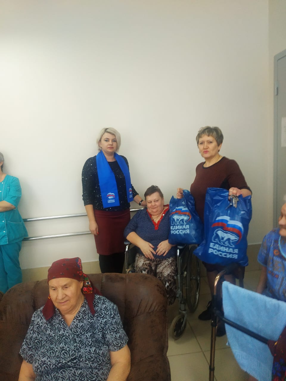 Декада инвалидов в отделении временного проживания граждан пожилого возраста и инвалидов не прошла без гостей. Учреждение посетила исполнительный секретарь Мантуровского отделения партии Единая Россия Цуканова М.М.  Она пожелала всем проживающим крепкого здоровья, долгих лет жизни и вручила сладкие  подарки.