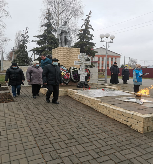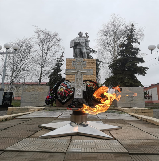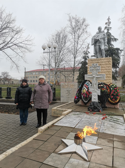 Сегодня директор Скобеева Т. И. с сотрудниками учреждения приняли участие в церемонии возложения венков к мемориалу павшим воинам.