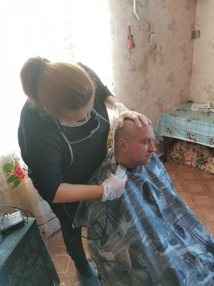 Услуги любезно согласилась предоставить социальный работник  отделения №3 социального обслуживания на дому граждан пожилого возраста и инвалидов Кашина Елена Валерьевна, ведь она отучилась на курсах «парикмахера» и использует сои навыки  для родных и знакомых.