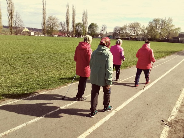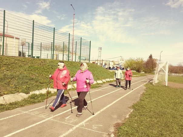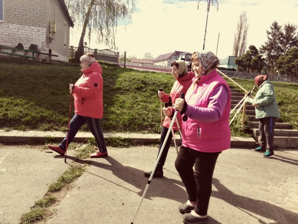 Для участников проекта «Курское долголетие» села Мантурово, 18.04.2024г.прошло очередное занятие скандинавской ходьбой.