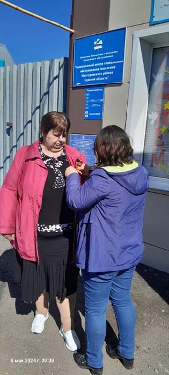 Сотрудники ОБУСО "КЦСОН Мантуровского района" присоединились к патриатической акции "Георгиевская ленточка". Георгиевская ленточка- символ Победы, символ памяти, связи поколений и воинской славы. Её носят у сердца в знак уважения к подвигу победителей в Великой Отечественной войне.